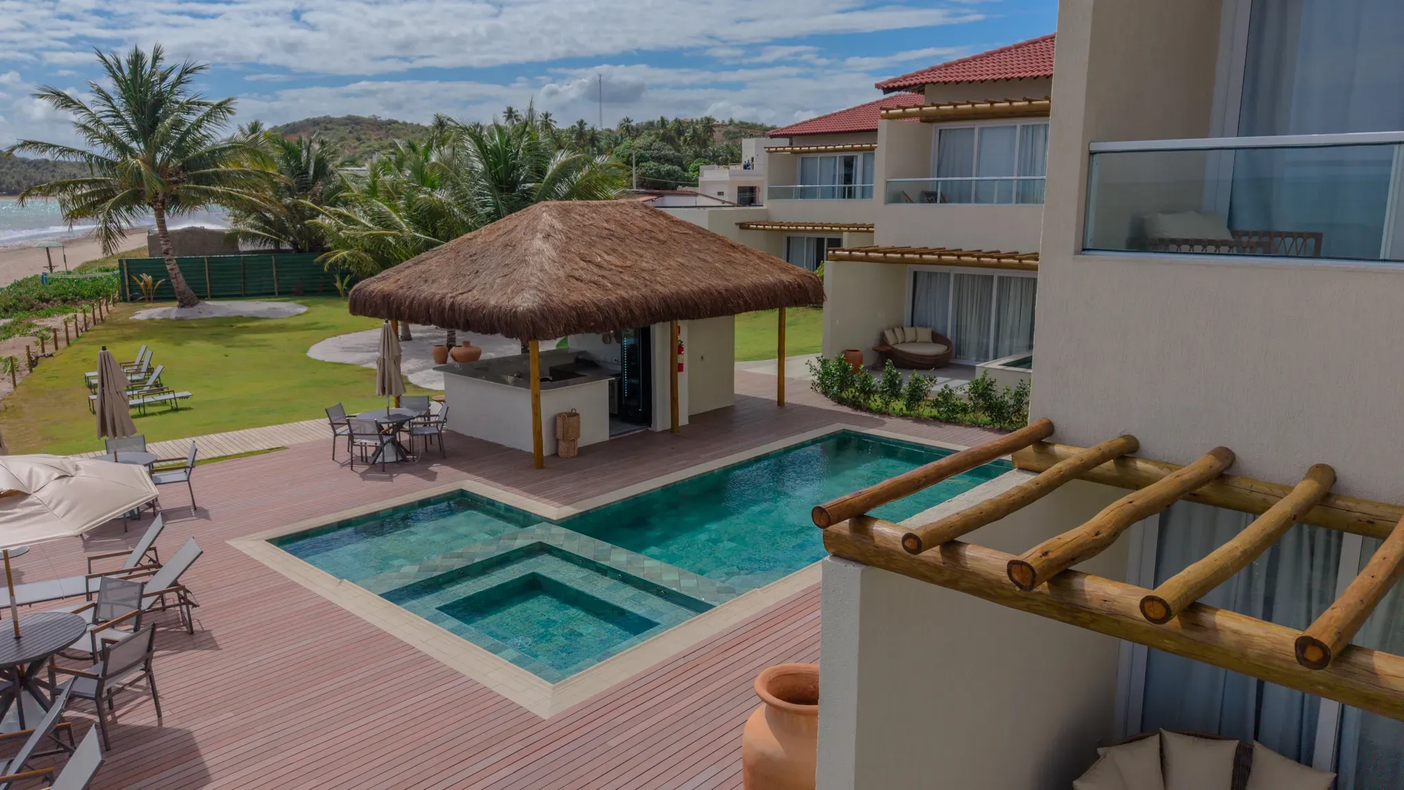 Con solo 17 habitaciones cuidadosamente diseñadas, cada espacio refleja la serenidad del litoral de Alagoas, integrando materiales naturales, decoración contemporánea y vistas que invitan a relajarse. Algunas categorías incluso cuentan con piscinas privadas, ofreciendo una experiencia exclusiva y romántica para parejas o viajes especiales.