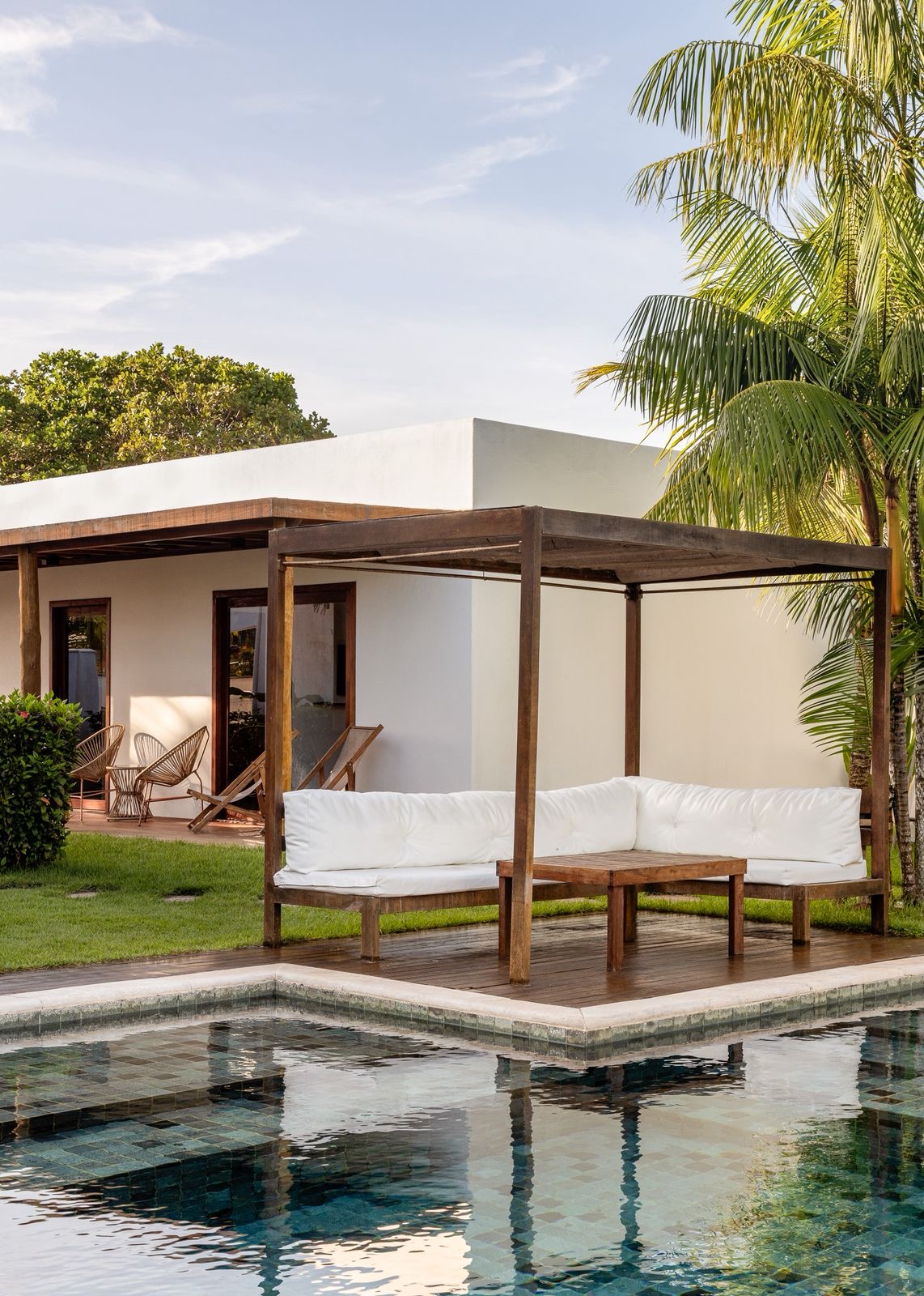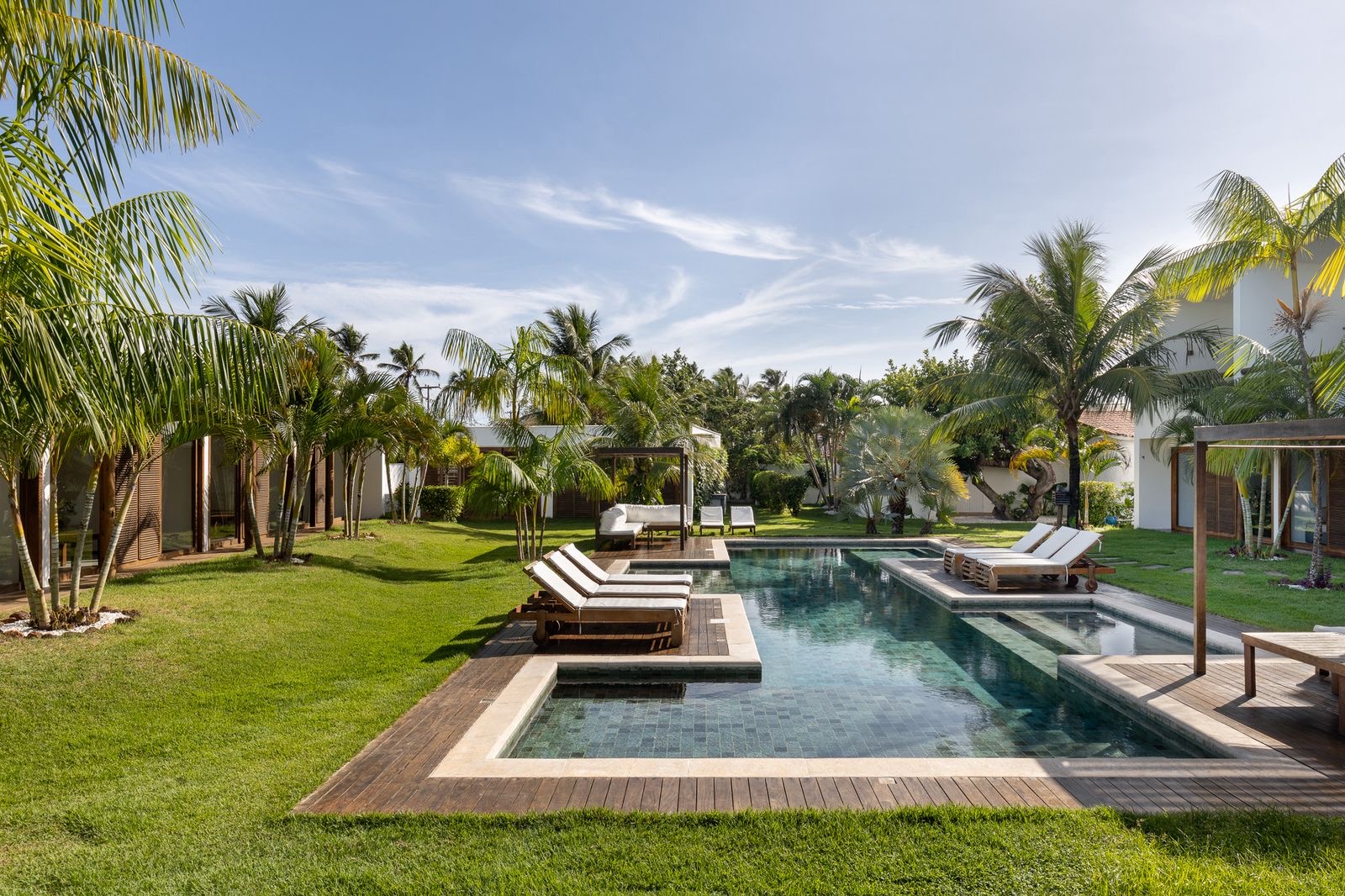 O bar convida você a um merecido momento de relaxamento, com petiscos saborosos e coquetéis refrescantes à beira da piscina de água salgada e agradavelmente aquecida — tudo isso cercado por um jardim exuberante, que traz um toque verde e fresco à sua experiência.