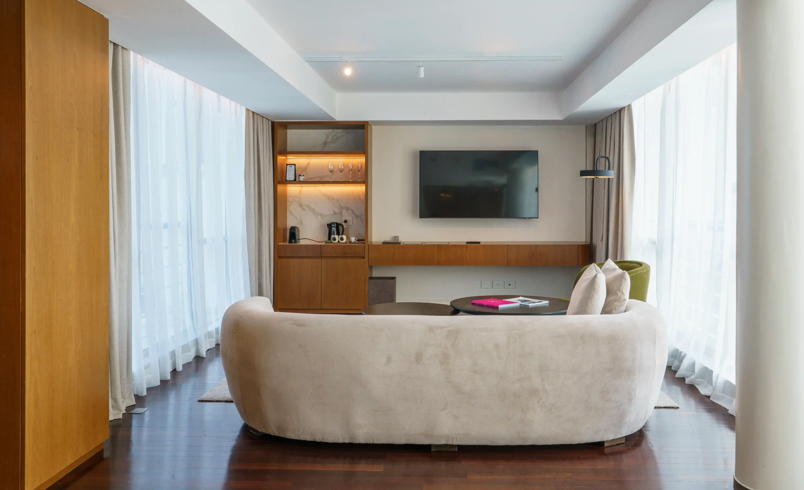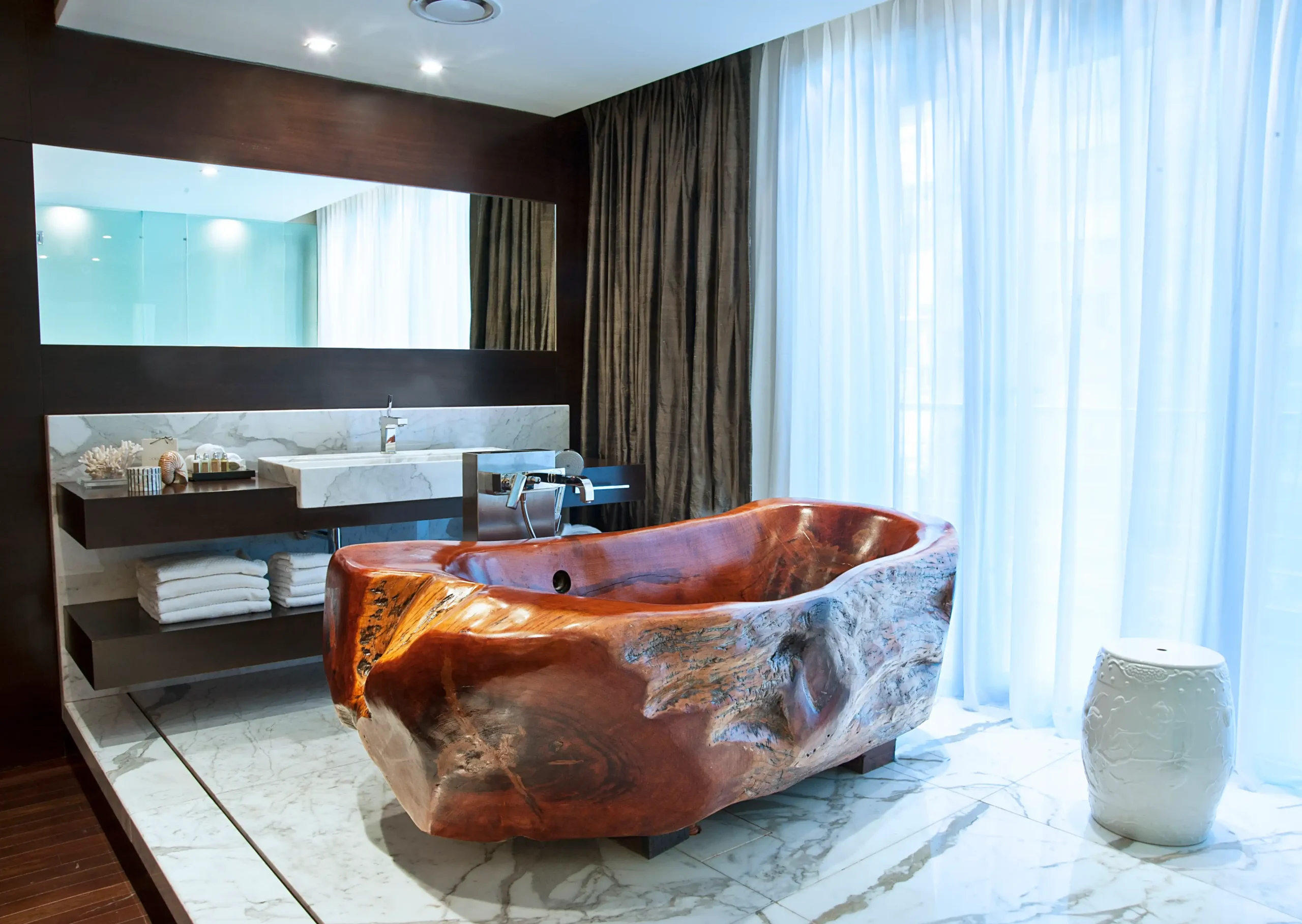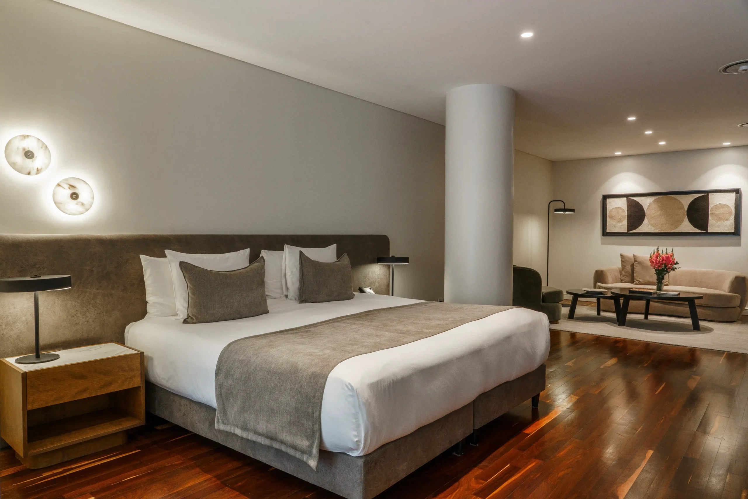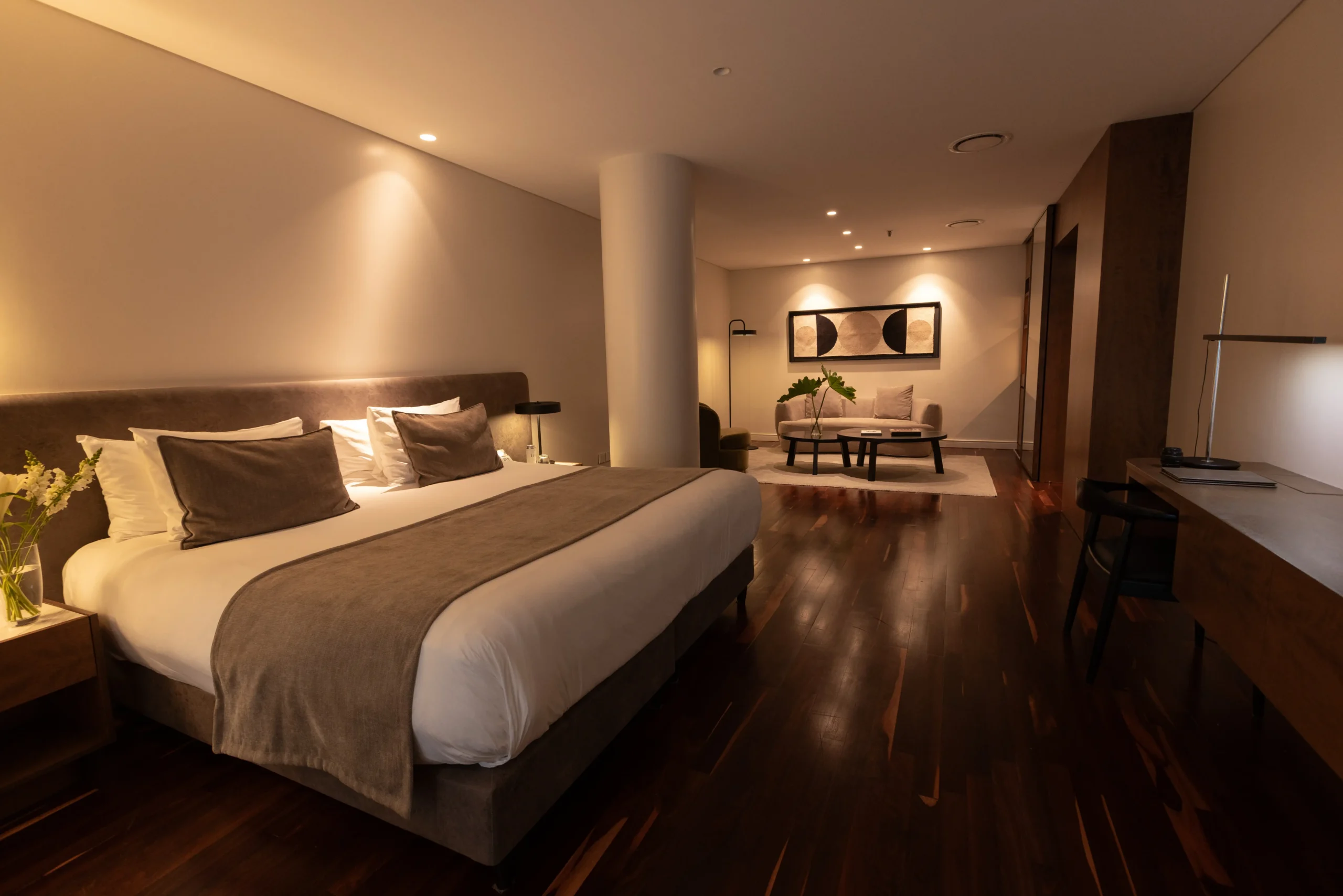 Las habitaciones priorizan la comodidad, con camas king-size, bañeras extragrandes y todas las comodidades. Cada una diseñada para que el espacio y la comodidad se fusionen.