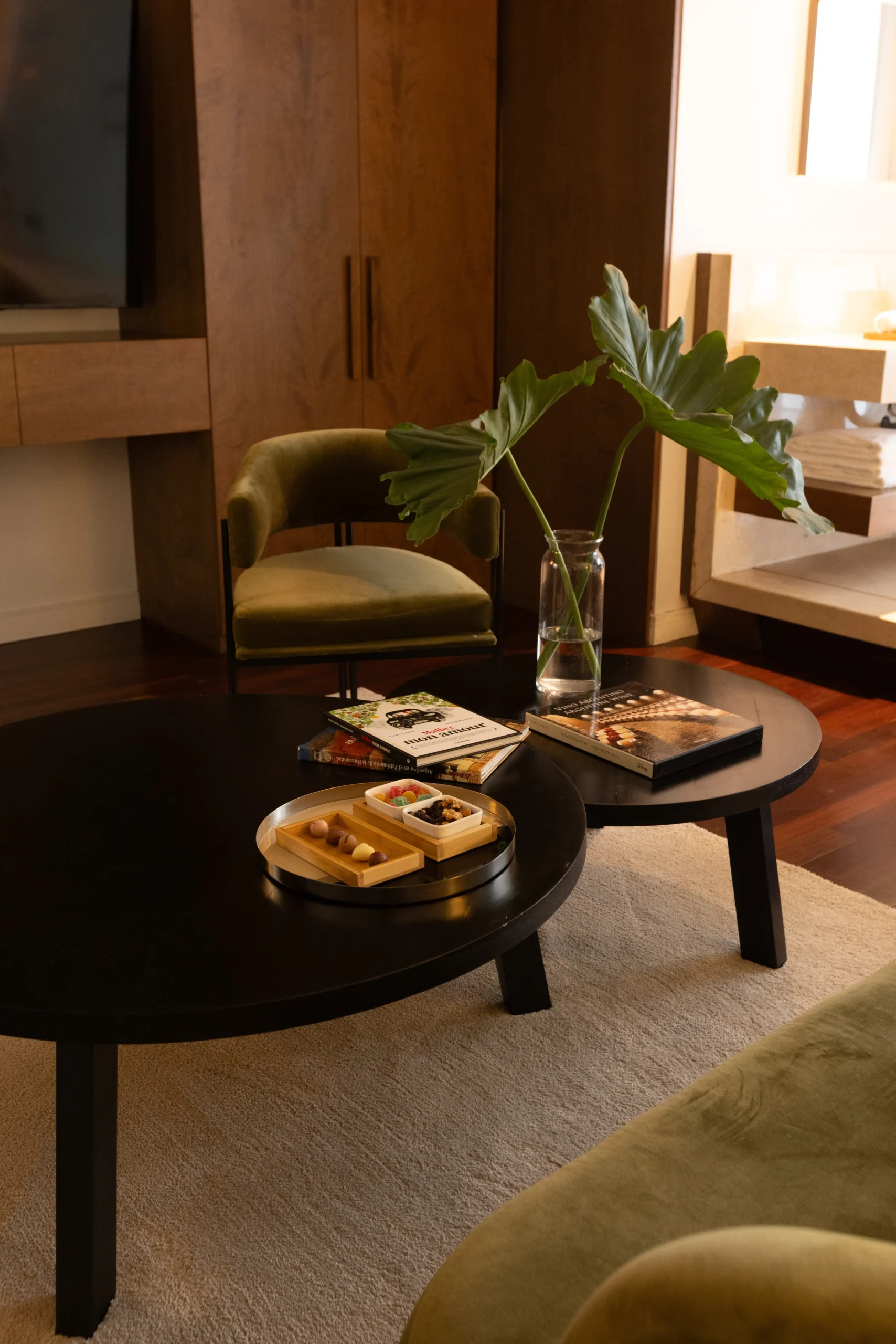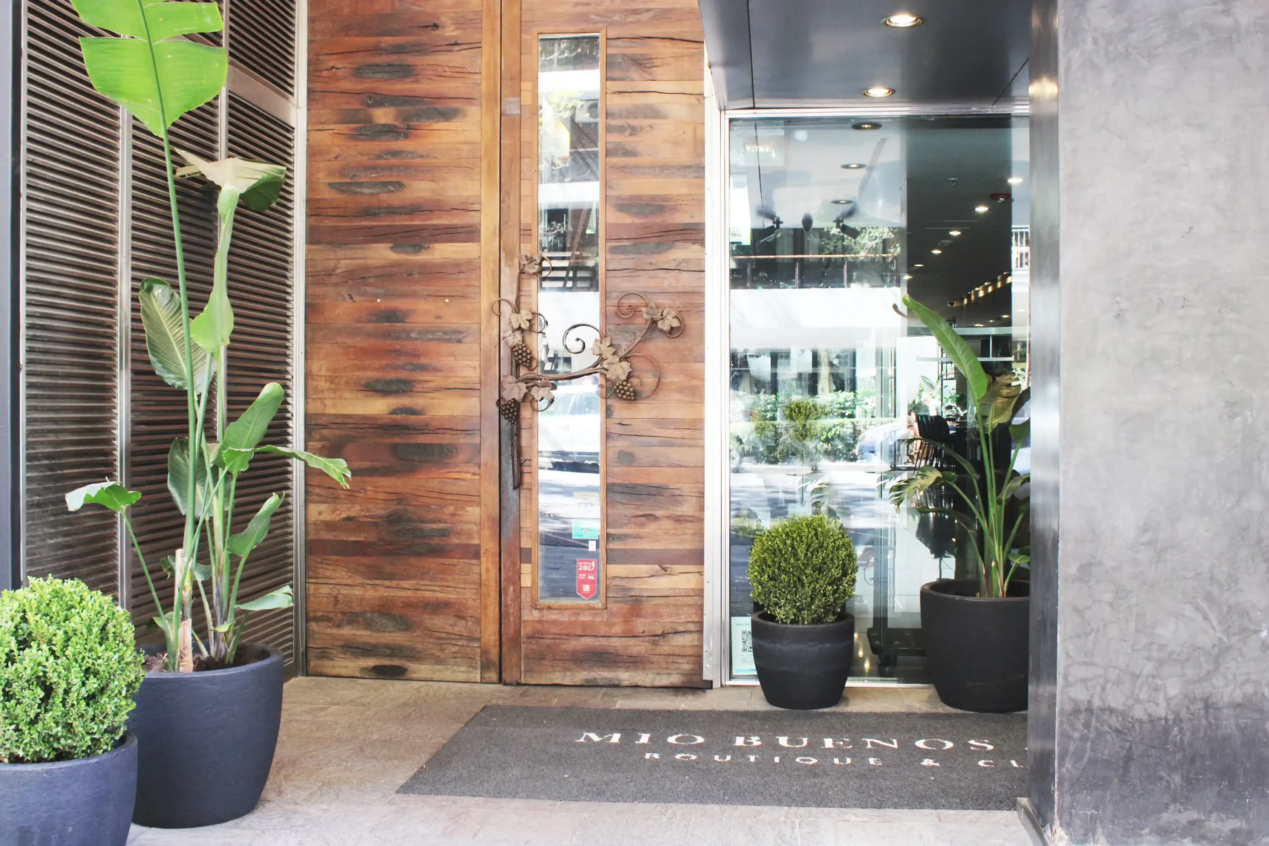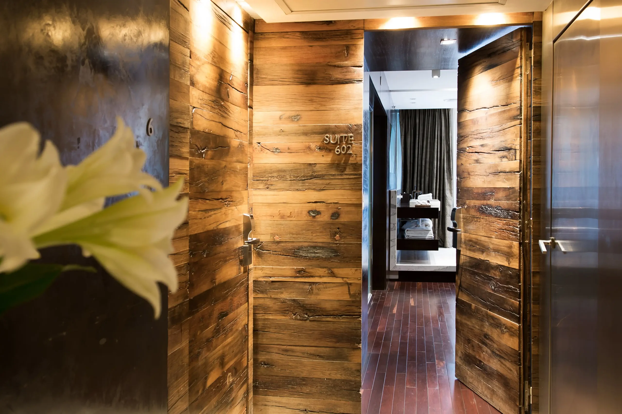 Atravesando la imponente puerta de seis metros de altura, hecha con barricas de roble francés, se descubre el diseño audaz, el confort y el servicio impecable de las lujosas habitaciones de este sofisticado hotel.