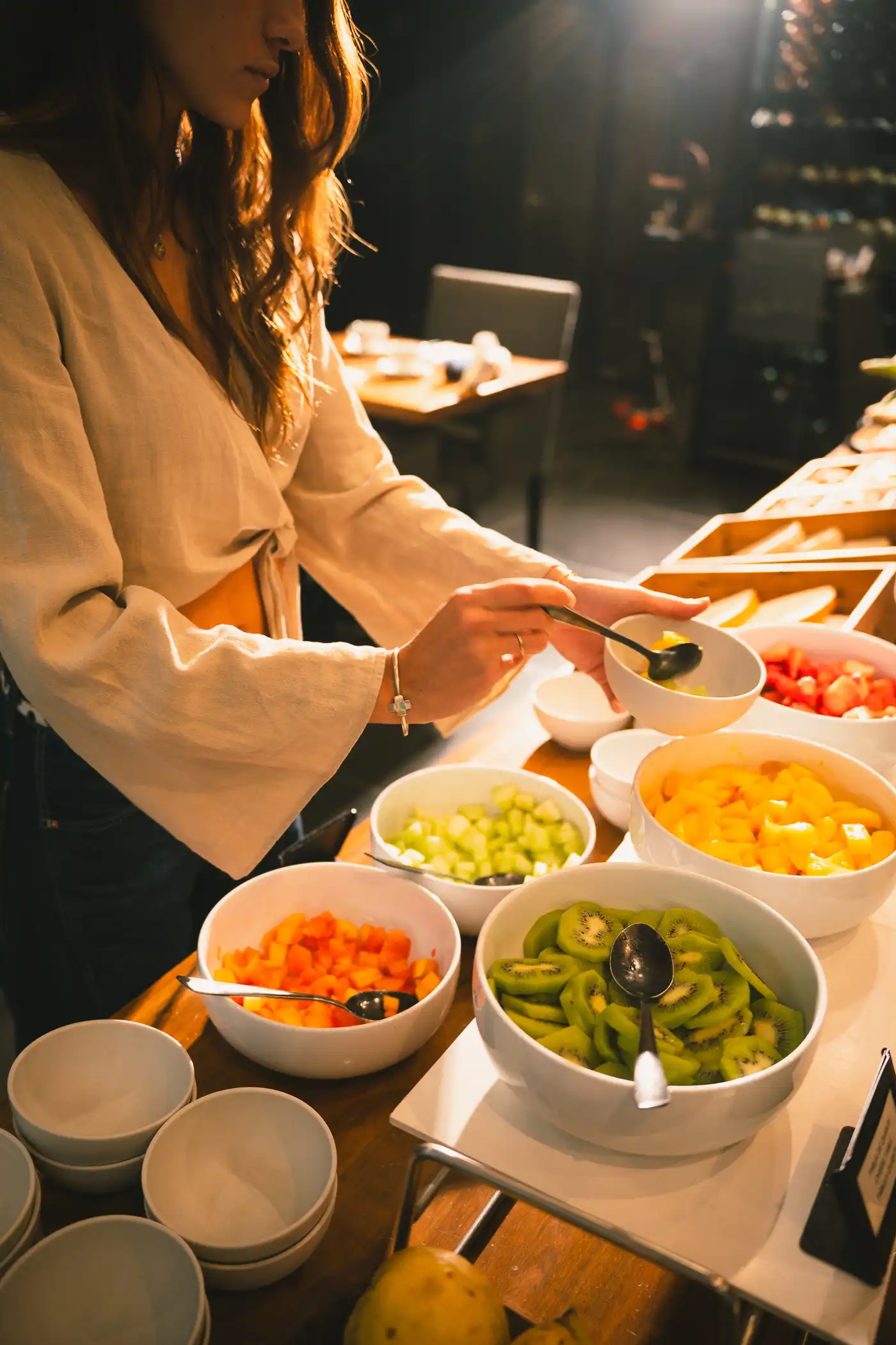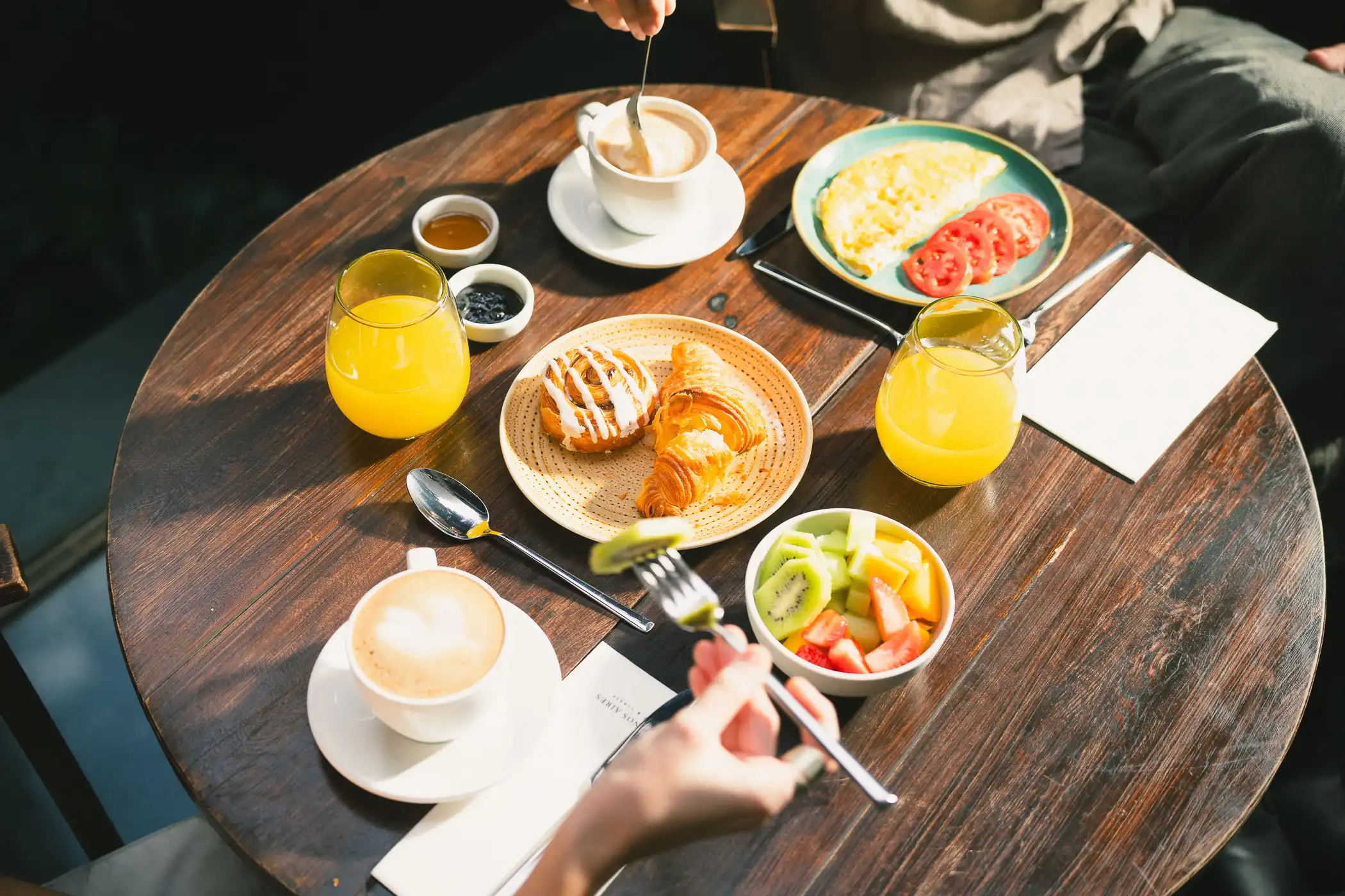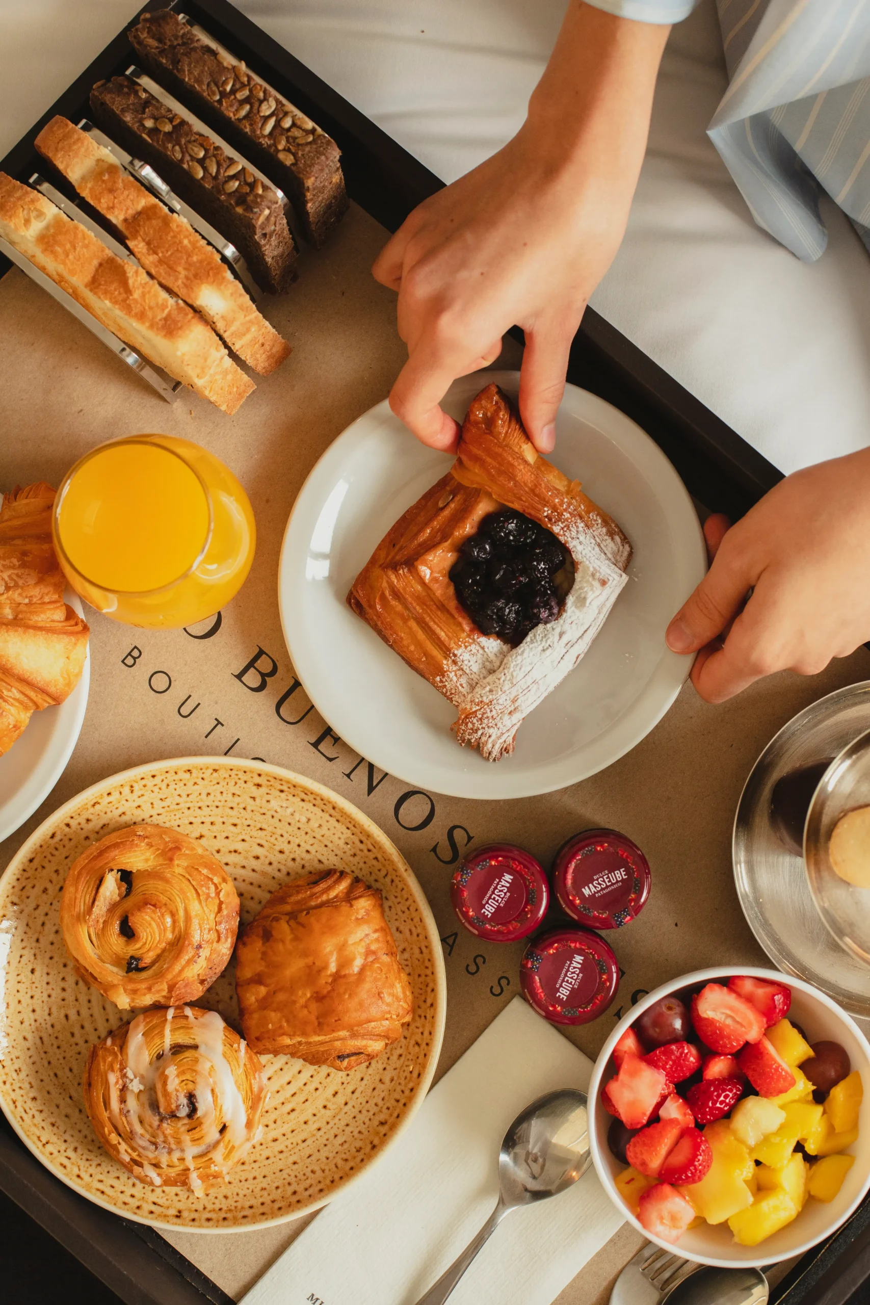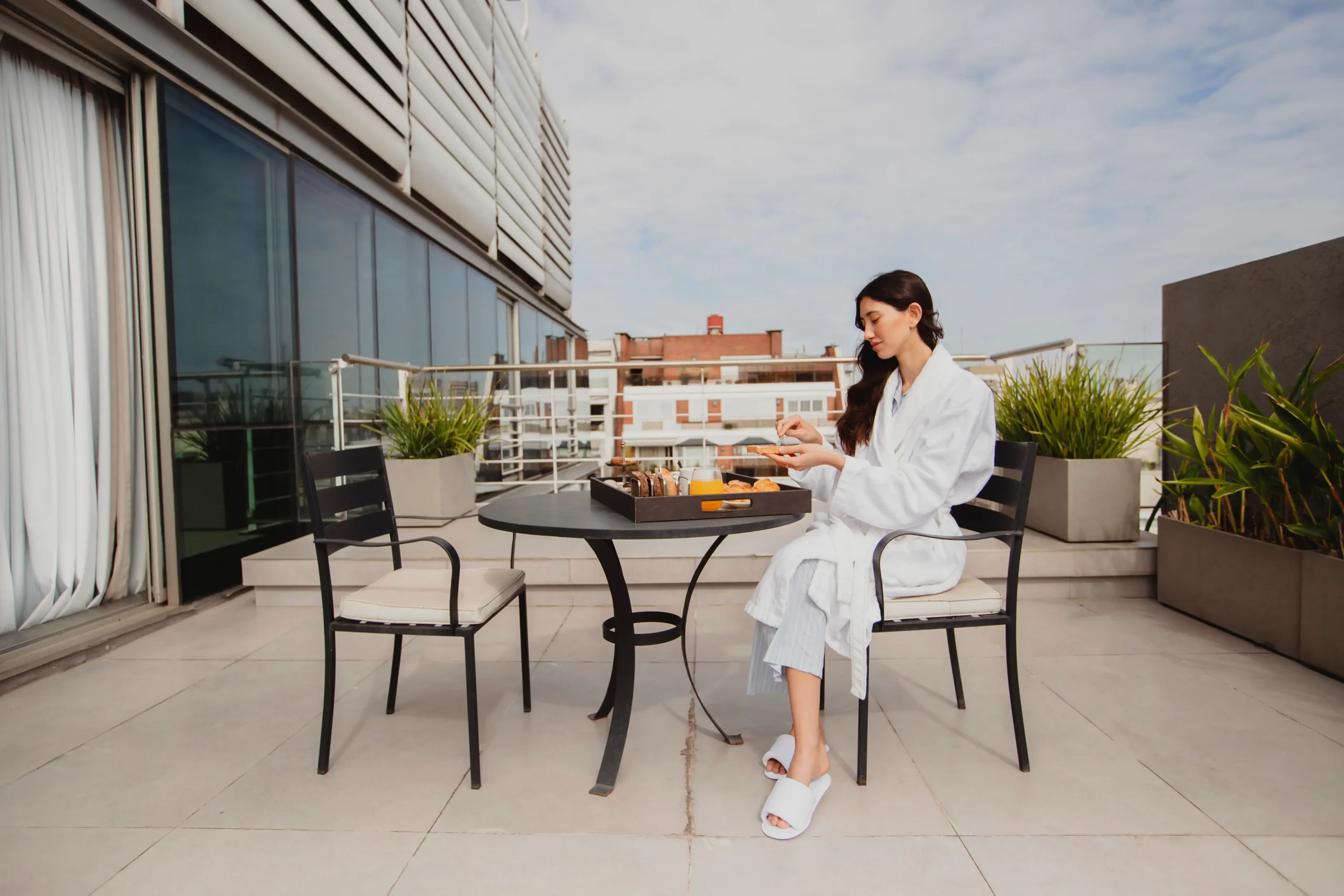 El desayuno buffet gourmet cuenta con productos frescos y naturales, que incluyen: fruta fresca, miel orgánica, pasteles, opciones calientes y saludables. Si se prefiere desayunar en la habitación, se puede solicitar el servicio de habitaciones en recepción.