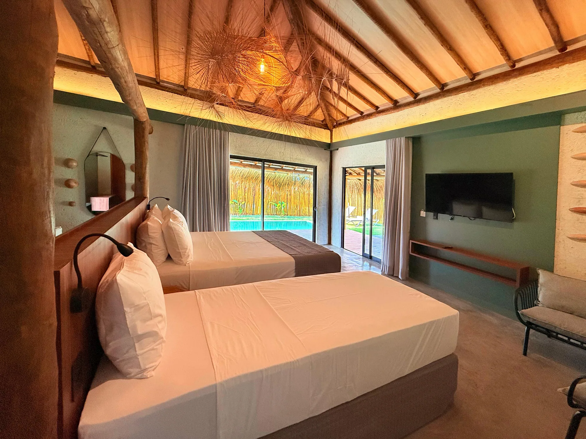 Cada bungalow ha sido diseñado para ofrecer comodidad, elegancia y una conexión genuina con la naturaleza. Con piscinas privadas y amplias zonas comunes, nuestros alojamientos son ideales para disfrutar de momentos de relax, ya sea en pareja o en familia.
